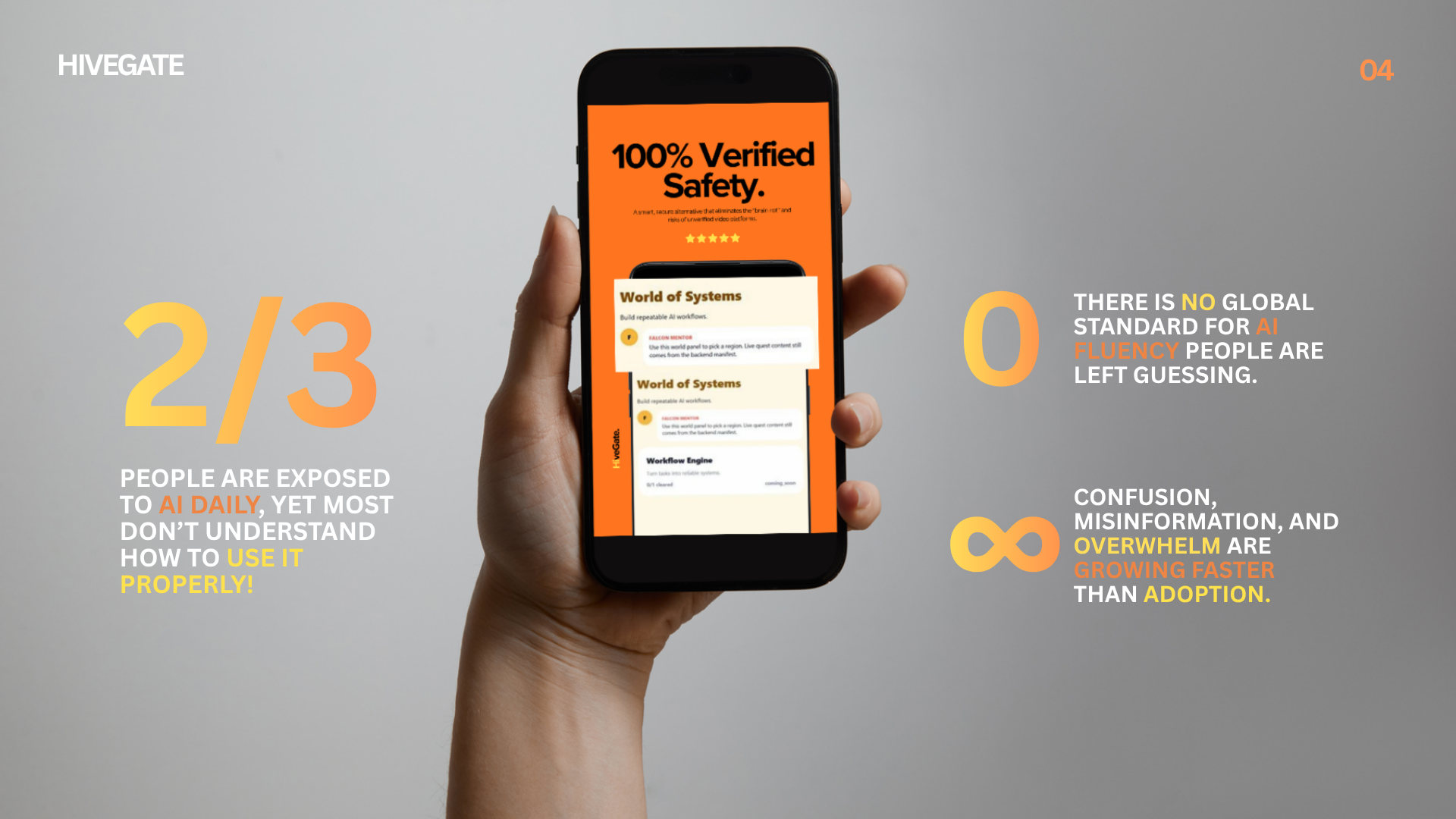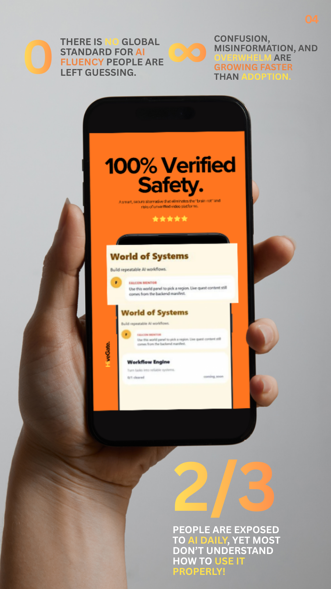 Most people aren’t ready, leaving a massive gap between potential and practical ability. HiveGate exists to solve this by creating a game-driven platform. It is a scalable, high impact solution to a global problem, shaping behavior, opening new markets, and helping societies adapt to AI while generating real economic impact.